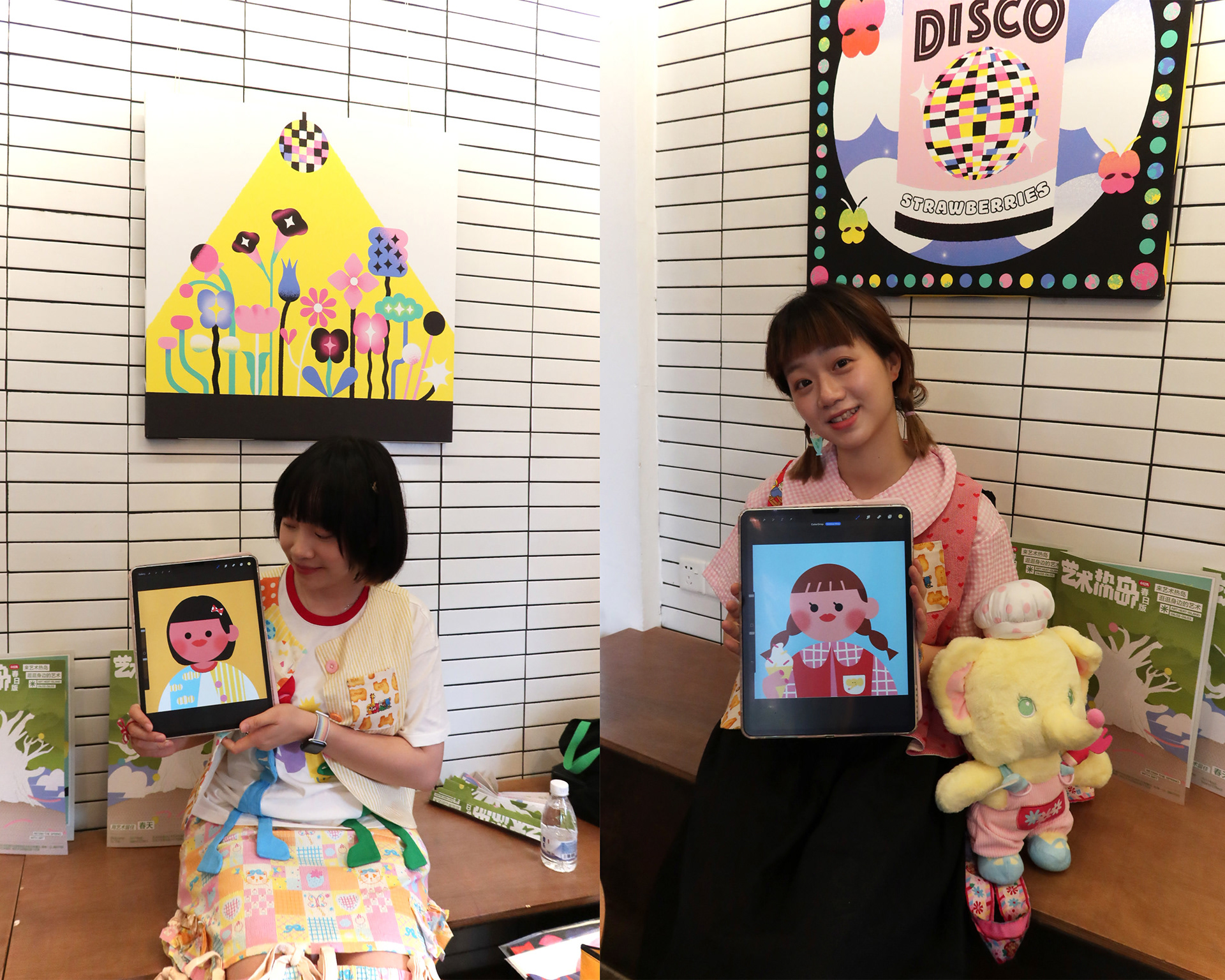 creating personalized portrait illustrations for visitors at the exhibition.